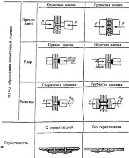 Для образования замыкающей головки стержень заклепки деформируют (осаживают) ударами пневматических молотков или давлением под прессом.