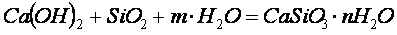 Наличие водной среды и высокой температуры вызывает на поверхности песчинок некоторое растворение кремнезема, образовавшийся раствор вступает в химическую реакцию с образовавшимся в течение первой стадии запаривания водным раствором гидрата окиси кальция и в результате получаются новые вещества – гидросиликаты кальция: