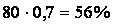 Исходная активность извести = 70%. Содержание извести в вяжущем = 80%. В этом случае, активность полученного вяжущего составит: