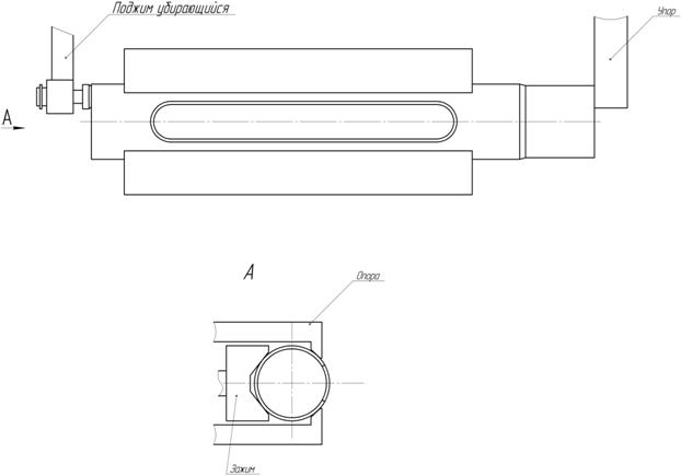 После установки заготовки трубы в зажимное приспособление происходит быстрый подвод фрезы. Далее при помощи поперечного движения шпинделя станка происходит врезание фрезы в трубу на всю глубину, до получения фаски в отверстии в трубе необходимого размера. Контроль размера фаски производиться перед каждой новой установкой режущего инструмента специальным калибром. В случае получения заданного размера станок выходит на автоматический цикл. После движения врезания, происходит продольное движение стола, с закрепленным на ней зажимным приспособлением. Величина продольного хода 205мм. Затем производится отвод фрезы, за счет поперечного движения шпинделя станка. Производится разжим заготовки трубы картера и перемещения ее на следующую технологическую операцию.