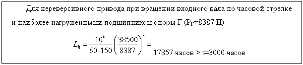 Для частореверсивного привода с наиболее нагруженными подшипником опоры Г (РГ=7190 Н)