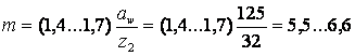 Выбираем ближайшее стандартное значение межосевого расстояния по ГОСТ 2144-76 равное aw=125 мм.