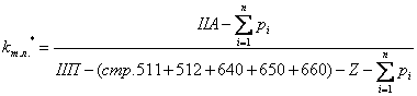 Значение коэффициента текущей ликвидности предприятия, рассчитываемое из предположения своевременного погашения государственной задолженности, определяется по формуле:
