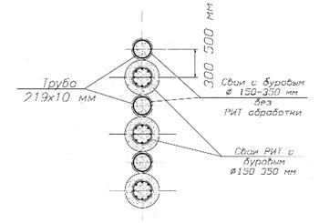 Применение свай РИТ в ограждающих конструкциях позволяет при минимальной элевации грунта при бурении получить конструкцию, по жесткости и проницаемости практически не уступающую "стене в грунте", способную, кроме того, нести достаточно большую вертикальную нагрузку. Благодаря тому, что грунт вокруг свай сильно уплотняется, а пески к тому же и цементируются, появляется возможность устройства свай на относительно большом расстоянии друг от друга, при этом нет необходимости устраивать забирки в межсвайном пространстве, т.к. в этом случае грунт между свай достаточно устойчив и, к тому же, обладает малой водопроницаемостью.
