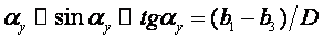 Этот способ получил наибольшее практическое применение ввиду высокой точности и относительной простоты реализации. Необходимым условием для применения этого способа является отсутствие торцевого и радиального биения поверхности полумуфты относительно оси вала. На рис.2 показано взаимное расположение полумуфт, соединяющих валы А и В, при наличии сложного смещения осей. На этом же рисунке показана схема выполнения замеров осевых (b) и радиальных (a) зазоров между полумуфтами в четырёх контрольных точках. При составлении схемы замеров исходили из того, что один из валов (например А) относится к базовой части машины, и поэтому можно считать, что он расположен баз отклонений от номинального положения. Т.е. его угловые и линейные отклонения условно приняты равными нулю. Задача ставится следующим образом. По данным о величине осевых и радиальных зазоров между полумуфтами необходимо определить осевое, поперечное и угловое отклонения вала В относительно вала А. Следует пояснить, что линия 1'-3' на торцевой поверхности полумуфты вала В есть cлед вертикальной плоскости, проходящей через ось вала А, а линия 4'-2' на этой же поверхности есть след горизонтальной плоскости, проведенной через ось вала А. Рассмотрение геометрических соотношений между искомыми величинами (линейными и угловым отклонениями оси В относительно оси А) и определяющими величинами (осевые и радиальные зазоры между полумуфтами) приводит к результату, справедливому для малых отклонений осей: