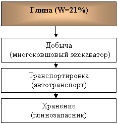 В проекте будем использовать схему производства изделий пластическим методом, поскольку используемая глина достаточно высокой влажности, среднепластичная. Также выбор данного метода обусловлен тем, что выпускаемая продукция – полнотелый кирпич.