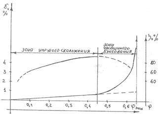 наблюдается как упругое скольжение, так и буксование. Они разделяются продолжением прямой скольжения