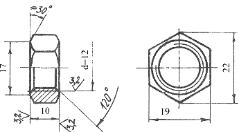 Рис. 3. Рабочий чертёж гайки М12 ГОСТ5945-72