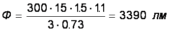 Принимаем: Е=300 лк; k=1.5; z=1.1