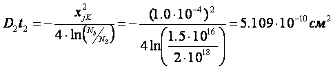 Из выражения 2 найдём произведение D1t1 для первого этапа диффузии (загонки) по формуле:
