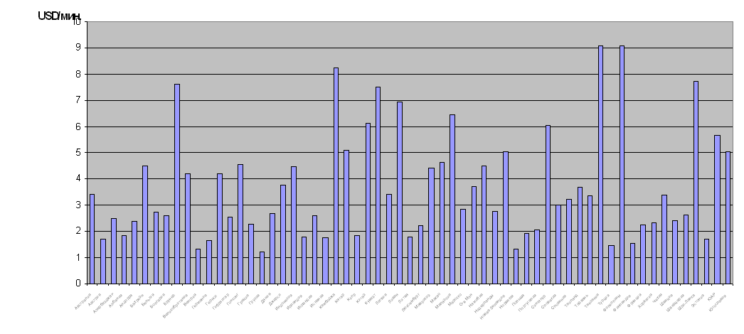 Диаграмма тарифов на международный роминг в сети Би Лайн 800