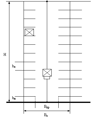 hв – расстояние от верхнего яруса стеллажей до низа форм покрытия здания.