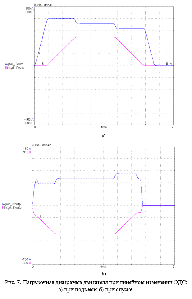 Рассчитаем нагрузочную диаграмму двигателя за цикл при линейном изменении ЭДС преобразователя.