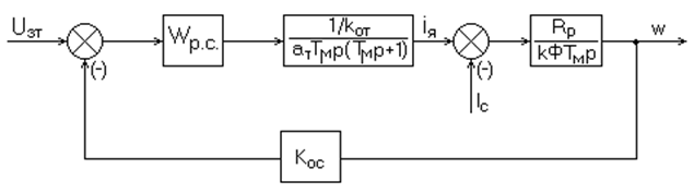 Объект регулирования скорости состоит из замкнутого контура регулирования тока и механического звена электропривода и имеет вид