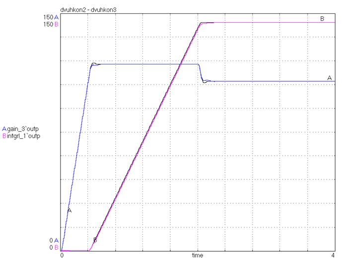В главе 3 проводились исследования динамики замкнутой системы. Было дано математическое описание электропривода и структурная схема. На ее основе с помощью программы 20-sim получены графики переходных процессов пуска в замкнутой системе. Их анализ показал соответствие результатов, полученных на ЭВМ, теоретическим. Учитывалось то, что пуск происходил при скачке задания, а контур настроен на технический оптимум.