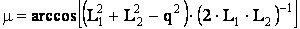 Определим условия существования структурной группы при заданных параметрах, для чего найдем угол передачи m (см. рис. 1.3.5):