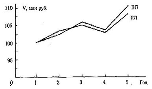 Для большей наглядности динамику производства и реализации продукции можно изобразить графически (рис. 2.1).