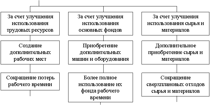 | Источник резервов | Резервы увеличения выпуска продукции за счет | ||