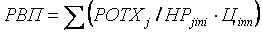 в) планируемое сокращение нормы расхода i-го ресурса на единицу i-го вида продукций умножается на планируемый к выпуску объем производства i-го вида продукции, полученный результат делится на плановую норму расхода и умножается на плановую цену данного изделия, после чего подсчитывается общая сумма резерва валовой продукции: