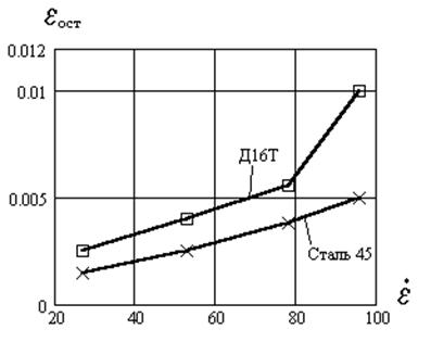 Рисунок 7.13 – Зависимость остаточной деформации от скорости деформации