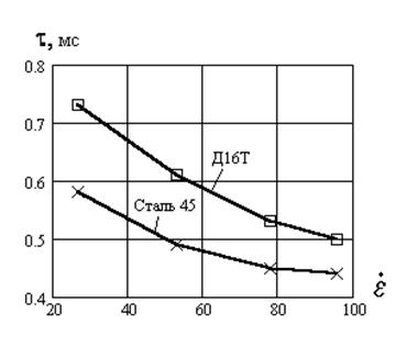 =100 с-1 по сравнению со Сталью 45, у которой уменьшение t на указанном интервале составляет 30%.