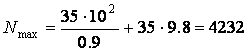 Определим Nmax. Рассмотрим силы, действующие на стержень, со стороны молота на стержень действует сила тяжести mg, m- масса молота, равная 35 кг. Также стержень растягивает сила R, обусловленная движением молота по окружности радиуса r.