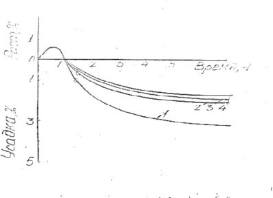 Рис.11 Усадка спрессованного порошка железа при 890 С при различном давлении: 1-400 мн/м2, 2-600 мн/м2,3-800 мн/м2, 4000 мн/м2.