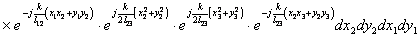 фурье-объектива и группируя совместно одинаковые экспотенциаль-ные сомножители, упростим его. Формальное увеличение пределов интег-рирования по входной апертуре