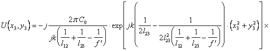 Выражение (5.14) описывает пространственное распределение комп-лексных амплитуд светового поля в плоскости х3у3 спектрального анализа и содержит ряд взаимонезависимых квадратичных фазовых сомножителя, по-ле в плоскости х3у3 является фурье-образом поля в плоскости х1у1 за входным транспарантом