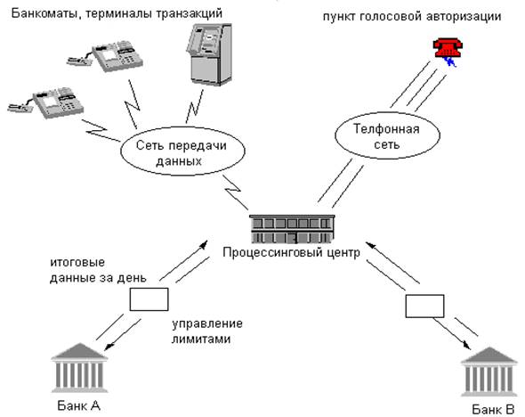 Введение базы по лимитам держателей карточек, авторизация и прочее возложены на процессинговый центр системы.