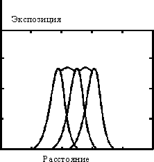 Рис. 17. Формирование отдельной линии при прекрытии гауссовых лучей.