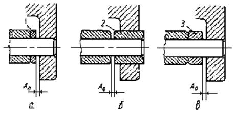 Сборка с пригонкой позволяет обеспечить необходимый размер припиливанием, шлифованием, шабрением и т.п., а также применением специальной детали, включаемой в сборочную цепь. Так, необходимый в предыдущем случае зазор может быть обеспечен дополнительной обработкой (пригонкой) торца втулки 3 (рис.4, в). Такой способ достижения заданного размера применяют в единичном и мелкосерийном производствах.