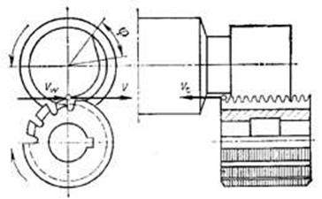 г) гребенчатыми фрезами внутреннего касания (охватывающими головками).