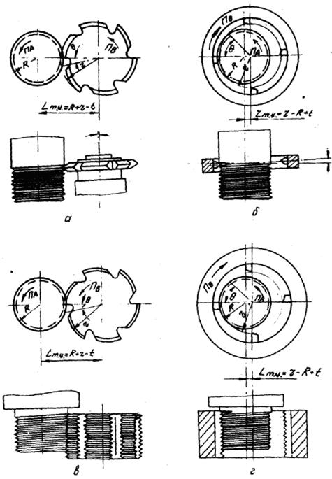 На рис.12 показаны четыре метода фрезерования резьбы: