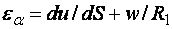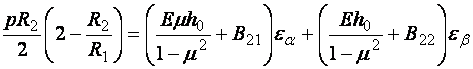 могут быть выражены через меридиональное и кольцевое относительное удлинения оболочки для случая осесимметричной деформации с помощью соотношений: