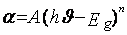 где e - заряд электрона, h - постоянная Планка, с - скорость света. В арсениде индия n-типа величина Еg=0.35 эВ при Т=300 К, а показатель степени в выражении для a=0.85 n=1, в материале р-типа Еg=0.36 эВ, а n=0.5.