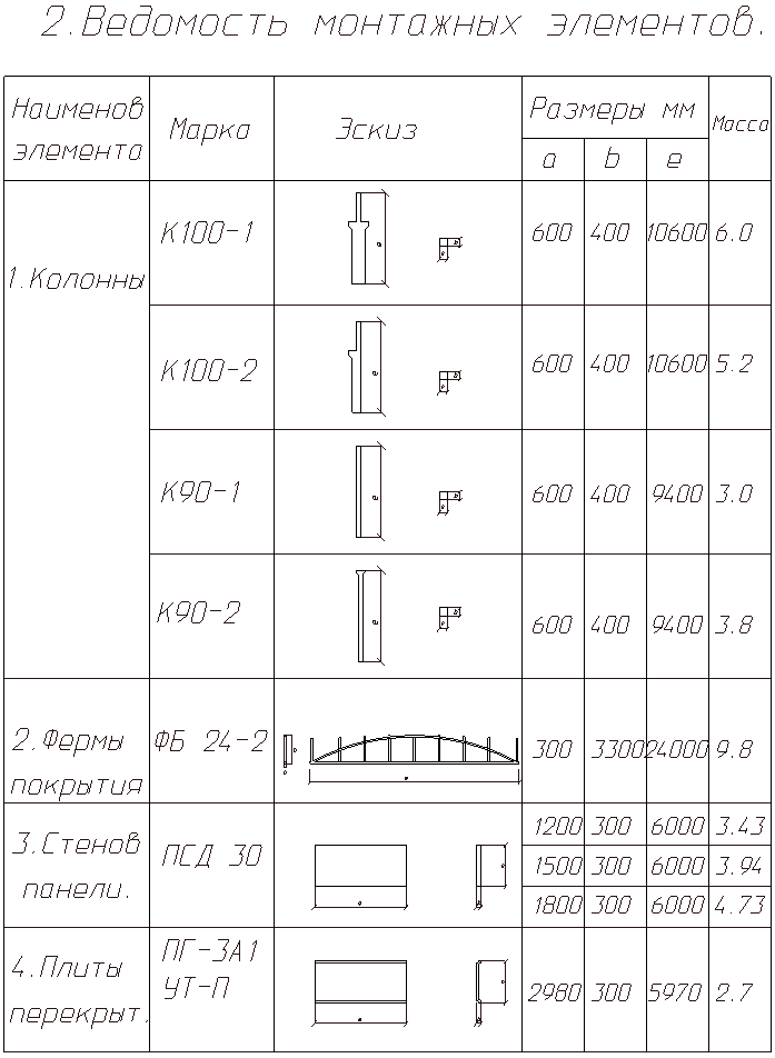Здание двухпролетное, размерами 120 х 48 м. В середине здания проходит деформационный шов, который делит его на две части. Высота этажа 9.4 м. Колонны крайних и средних рядов размещаются с шагом 6м. С торцов здания устанавливаются фахверковые колонны с шагом 6м.