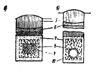 Рис. 6. Водоприемные сооружения для каптажа восходящих (а) и нисходящих (б) родников: