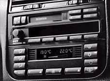 Пульт управления климатической установкой (БМВ 3-й серии). На дисплее — температура за бортом (19о) и в салоне (22о). Кнопки слева — три уровня подачи воздуха. Левая нижняя — автоматический режим климатизации. Вторая снизу кнопка в правом ряду включает рециркуляцию воздуха.