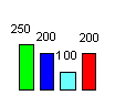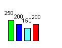 Рис. 3. Схема маршрута (В - Г - Д - Е) с диаграммами грузопотоков. На диаграммах обозначены: количество грузов, ежемесячно перерабатываемых терминалами, в тоннах (цифры сверху), распределенных по кварталам года (цифры снизу).