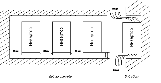 Рисунок 10 – Минимально допустимые эксплуатационные расстояния при монтаже инвертора.