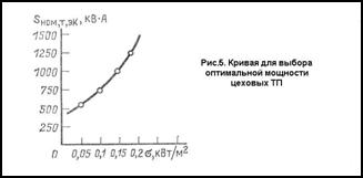 Ориентировочное количество необходимых трансформаторов одинаковой оптимальной экономической мощности для покрытия всех электрических нагрузок цеха при неравномерном распределении этих нагрузок по площади цеха и при найденной средней плотности нагрузок цеха