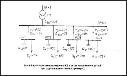 Пример 2 Схема питания нагрузок 0,4 кВ показана на (рис. 8). Реактивные мощности шкафов