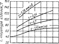 Рис. 4 Температура обрабатываемой детали при резании вращающимся резцом в зависимости от подачи s и износа резца причиной того, что теплота резания сосредоточивается в передней части резца, прилегающей к его вершине, что способствует ее пластической деформации. При этом режущие способности инструмента сохраняются ввиду его значительной красностойкости. Однако очень высокий температурный градиент, свойственный минералокерамическому резцу, способствует тепловому удару, разрушающему режущую кромку инструмента.