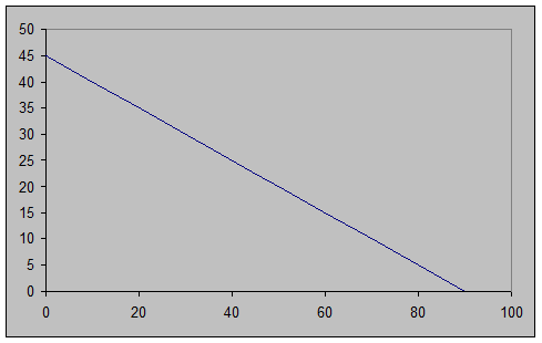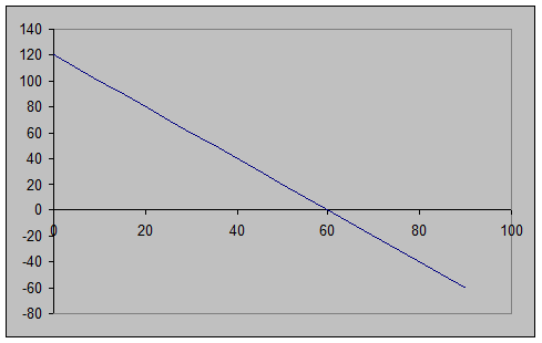 Если задать Р= 90000 рублей, целевую функцию можно проиллюстрировать графически. Если затем придать Р другое значение, то новая прямая будет параллельна прямой, соответствующей значению Р=90000 рублей.
