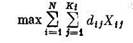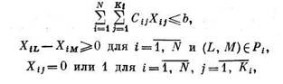 где N — число туристических районов, на которые подразделяется страна (для Турции N = 65); Ki — число проектов, предложенных для реализации в i-м туристическом районе в течение планируемого периода (3-й пятилетний план для Турции); Хij — переменная, принимающая значение 1, если j-й проект выбран для реализации в i-м туристическом районе, и значение 0 в противном случае; dij — оценка выгод, получаемых при условии, что j-й проект реализован в i-м туристическом районе; сij — ориентировочная стоимость (по завершении) j-го проекта, предложенного для реализации в i-м районе; Pi — индексное множество относительной значимости проектов, предложенных для реализации в i-м туристическом районе; b — ассигнования на развитие сектора туризма в течение планируемого периода.