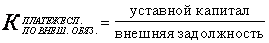 Если ликвидность предприятия показывает способность выполнять краткосрочные текущие обязательства, то платежеспособность - это способность предприятия выполнять (погашать) все свои внешние долги как краткосрочные, так и долгосрочные. Этот показатель наиболее точно показывает вероятность банкротства. Предприятие считается платежеспособным, если его общие активы превышают его внешние обязательства. Для измерения уровня платежеспособности используют специальный коэффициент, который показывает долю собственного капитала в его общих обязательствах краткосрочных и долгосрочных. Этот коэффициент рассчитывается по следующей формуле: