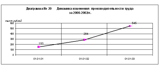 За анализируемый период численность основных производственных рабочих выросла на 19%, а производительность труда выросла в 3,6 раза со 150 тысяч рублей на человека до 545 тысяч рублей. (см. диаграмму № 20)
