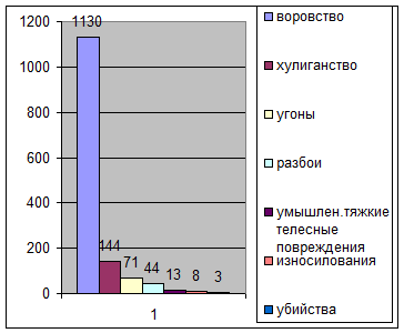 Рис.4 Преступления, приходившиеся на 1999 г. несовершеннолетними лицами.