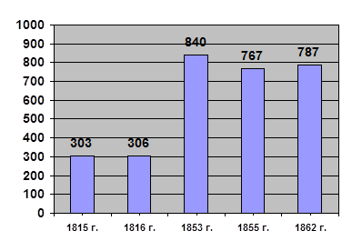 В этот период в России начинает развиваться определенная социальная политика и законодательство, складывается система призрения людей, и в частности - детей, нуждающихся в помощи. Церковь постепенно отходит от дел призрения, выполняя другие функции, а государство создает специальные институты, которые начинают осуществлять государственную политику в деле оказания социальной поддержки и защиты. Динамику роста институтов призрения и числа самих призреваемых можно увидеть на диаграмме.